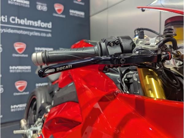 🔥 2018 Ducati Panigale V4S – £15,750 🔥 💥 67 Plate | 12,400 Miles | 4 Owners 💸 Full Akrapovic Exhaust | Carbon Upgrades | Ducati Performance Parts The Ducati Panigale V4S is Ducati’s first production V4 superbike – a MotoGP-derived masterpiece with breathtaking performance and cutting-edge electronics. This 67-plate example is loaded with premium extras and carbon parts to make it stand out from the crowd. Producing over 210 bhp from its 1,103 cc Desmosedici Stradale V4, the Panigale V4S features Öhlins Smart EC 2.0 semi-active suspension, Brembo Stylema brakes, and a full electronics suite for the ultimate track or road experience. Already stunning from the factory, this bike is enhanced with a full Akrapovic exhaust and a host of high-quality carbon and Ducati Performance upgrades. 🏍 Key Features & Upgrades: 1,103 cc Desmosedici Stradale V4 – over 210 bhp Full Akrapovic exhaust system Carbon single seat cover Carbon frame guards Carbon tank cover Carbon front & rear mudguards Ducati Performance levers Red anodised reservoir covers Radiator guards fitted Underseat fuel tank guard Öhlins Smart EC suspension TFT dash, rider modes & advanced electronics 🏁 Why Buy This Bike? 67 plate (2018) Panigale V4S 12,400 miles, 4 owners Full Akrapovic system & extensive carbon upgrades Fully loaded with premium Ducati Performance parts Incredible value at £15,750 📍 Ducati Chelmsford 📞 01708 763360 📦 Nationwide Delivery | 💳 Finance Available Contact us today to arrange a viewing, book a test ride, or discuss finance and delivery. An incredible machine, fully loaded and ready for its next rider – don’t miss out.