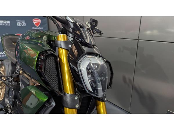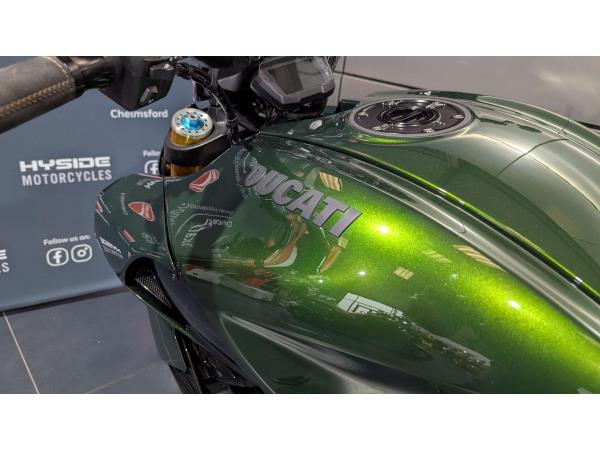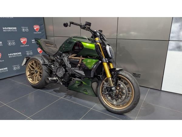 🔥 Ducati Diavel 1260 S – 2020 | Custom Lamborghini Spec 🔥 💰 Price: £34,995 📆 Mileage: 3,500 miles 👤 1 Owner | Custom build | Exceptional condition This 2020 Ducati Diavel 1260 S is a one-off custom build, inspired by Lamborghini design and finished to an exceptionally high standard. With just 3,500 miles and one owner, this Diavel stands out as a truly unique machine, combining Italian performance with bespoke detailing throughout. Finished in stunning Lamborghini Verde Ermes paint, this bike benefits from an extensive list of premium upgrades, making it unlike any other Diavel on the market. 🏍 Specification & Upgrades: Lamborghini Verde Ermes custom paintwork Alcantara seat with bronze stitching Carbon fibre turn signal covers Carbon fibre intake covers Carbon fibre rear seat cover Ducati Lamborghini Edition forged wheels Rizoma grips with Alcantara inserts & bronze stitching Rizoma black end cap mirrors Termignoni full exhaust system finished in satin black Dedicated engine map AEM Factory titanium sprocket kit AEM Factory black rear wheel nut kit AEM Factory black aluminium levers AEM Factory black frame cap kit AEM Factory black front wheel nut AEM Factory black fuel tank cap AEM Factory black fluid caps Black 525 chain CNC Racing black clutch kit Genuine Lamborghini Aventador valve caps 🏁 Why Buy This Bike? ? One-off custom Diavel ? Low mileage – just 3,500 miles ? Lamborghini-inspired specification ? High-end performance & cosmetic upgrades throughout ? Collector-grade condition ? £34,995 📍 Ducati Chelmsford 📞 01708 763360 📦 Nationwide Delivery | 💳 Finance Available Contact us today to arrange a viewing, request a walk-around video, or discuss finance options. A truly unique Ducati Diavel 1260 S — custom, exclusive, and uncompromising.