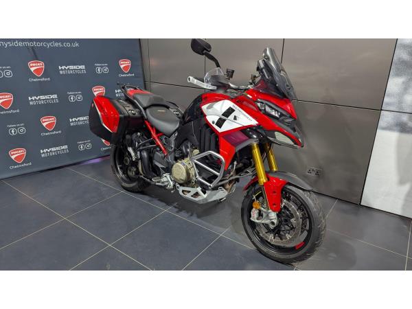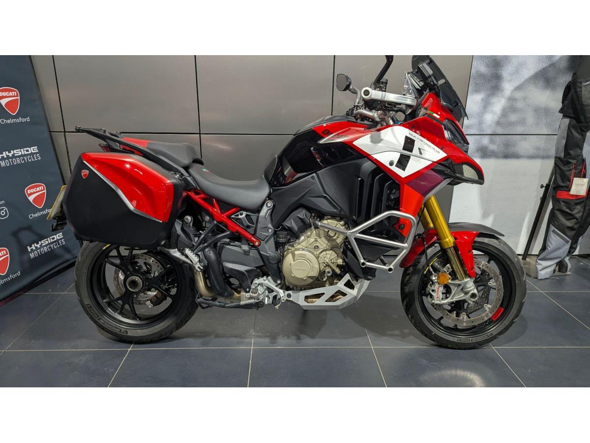 🔥 Ducati Multistrada V4 Pikes Peak – 2022 | Akrapovic | Panniers 🔥 💰 Price: £22,995 📆 Mileage: 4,381 miles 👤 2 Owners A superb example of the 2022 Ducati Multistrada V4 Pikes Peak, combining superbike performance with long-distance touring capability. With its 17” wheels, Öhlins Smart EC 2.0 suspension and aggressive Pikes Peak styling, this is the sportiest Multistrada in the range. This bike has covered 4,381 miles and comes fitted with a fantastic range of desirable touring and performance upgrades. 🏍 Specification & Extras: Full Akrapovic exhaust system Panniers fitted Heated grips Engine bars Centre stand Radiator guards Belly pan Touring handguards Lowered seat Öhlins electronic suspension V4 Granturismo engine Cornering ABS, traction & wheelie control Multiple riding modes Full TFT display 🏁 Why Buy This Bike? ? Top-spec Pikes Peak model ? Low mileage – 4,381 miles ? High-value extras already fitted ? Performance & touring capability combined ? £22,995 📍 Available now 📞 Contact us for viewing, walk-around video or finance options A serious performance adventure bike with premium upgrades — ready to ride.