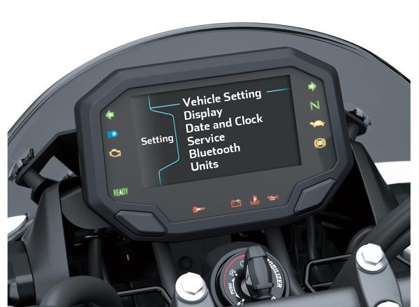 Kawasaki’s unique, electronically controlled 6-speed transmission uses proprietary logic to smoothly shift gears and operate the clutch. With actuation of the gears and the hydraulic clutch carried out by the bike, the rider can focus on throttle control.