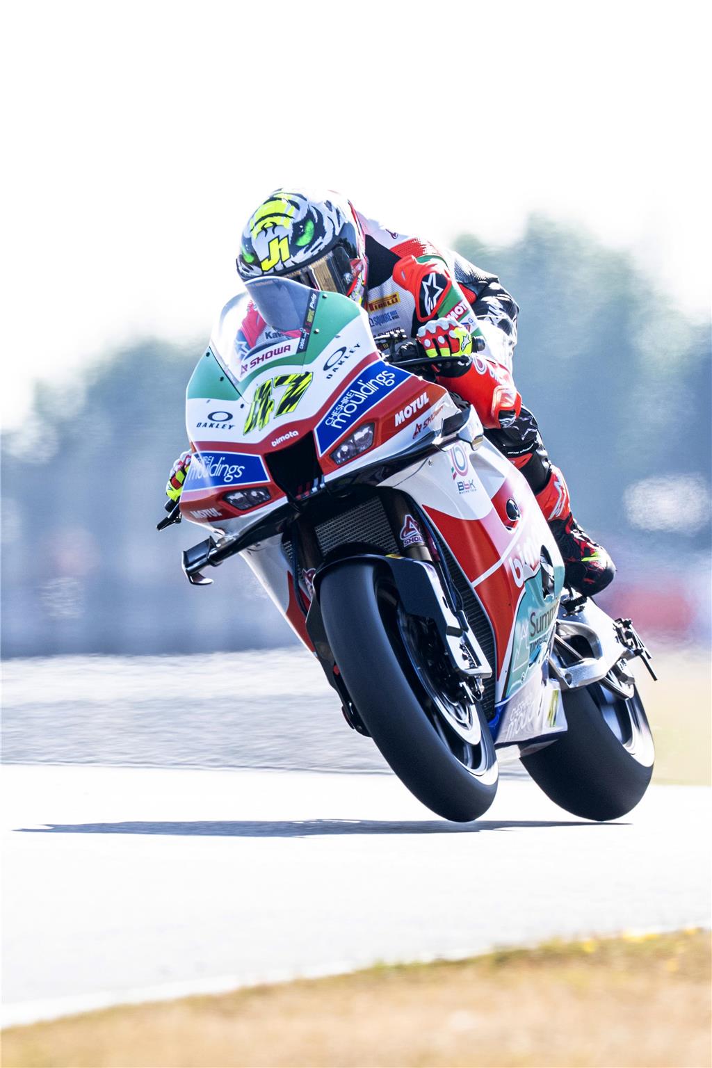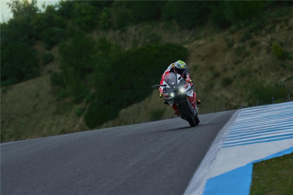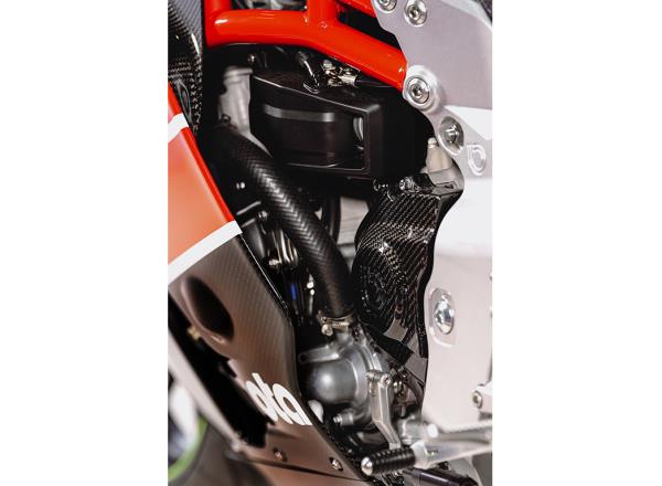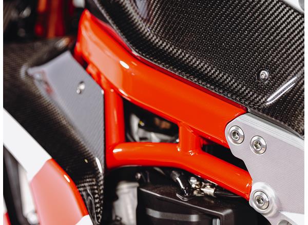 Dry carbon fibre with a high carbon content is specially-sculpted into each part of the exterior, along with all structural sub-frames. These are produced in the same autoclave facilities used for MotoGP and high-quality Italian supercars.