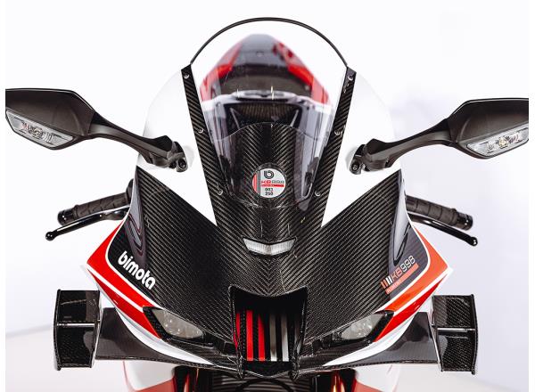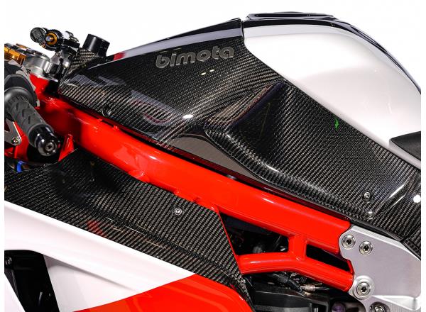 For bimota, form and function go hand-in-hand. Being fast on track is synonymous with beauty. Delicately crafted in the Rimini region of Italy by the bimota team, the sculpted dry carbon exterior parts are lightweight yet strong. More than style, attention was paid to each part’s contribution to aerodynamics on the racetrack, and the form that results is speed manifest on two wheels. Wind tunnel analysis and on-track testing by top-level WorldSBK riders confirm that the KB998 Rimini’s beauty is not skin-deep; it excels in going just as fast as it looks.