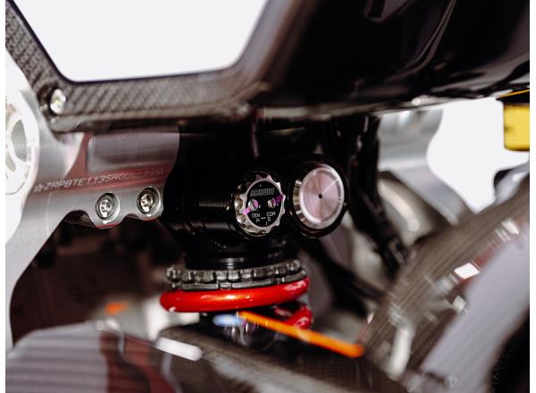 High-quality Anticorodal, Ergal and Avional billet aluminium parts are used throughout, including the swingarm, triple clamps, front and rear suspension mounts and links. These luxurious parts, made from forged high-grade aluminium ingots by CNC machining, are not only highly rigid and extremely light, but also beautifully crafted. All these machined parts are also manufactured in Italy, in the Rimini area.