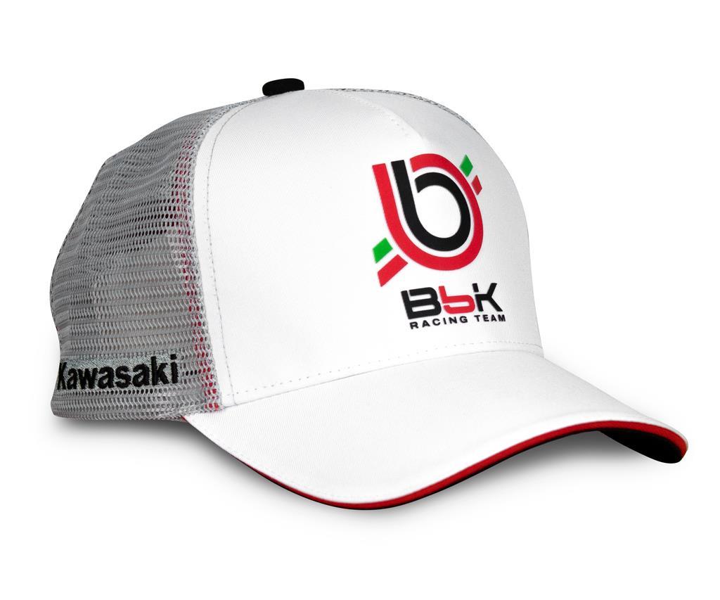 It features embroidered red and white Bimota markings and Kawasaki logo| rubber Bimota trademark on the back| the inside of the cap is taped with Bimota branded red binding and the black underside of Peak is printed with Bimota by Kawasaki logo.